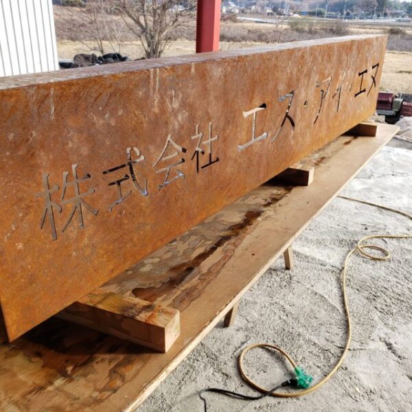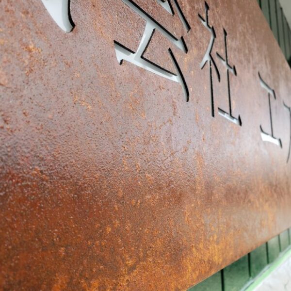 他に無い看板をご希望されていましたので、風化した用に見える「サビ加工」を
