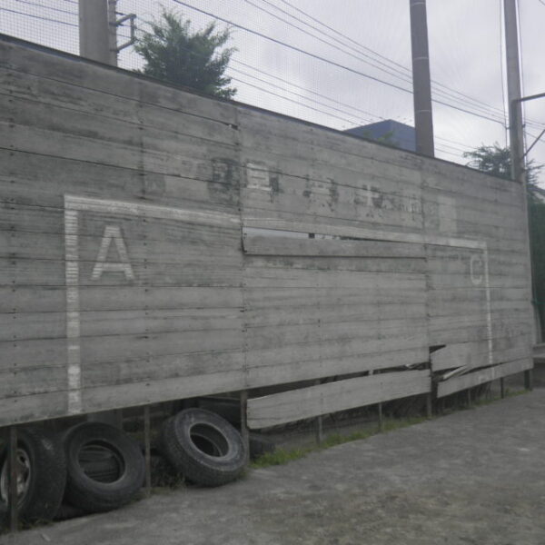 長年にわたり活躍してきたサッカーゴールのボードが、経年劣化により