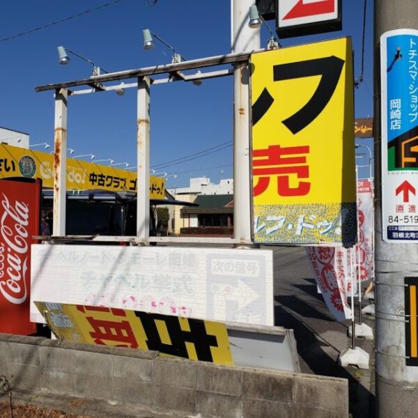 ゴルフドゥ様の自立誘導サインパネルの交換です。他社様の施工ですが去年の台風で看板パネルごと吹き飛ばされてしまいました。