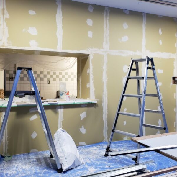 今回のご依頼は看板以外にも軽量枠組み、ボード貼り、照明器具設置など