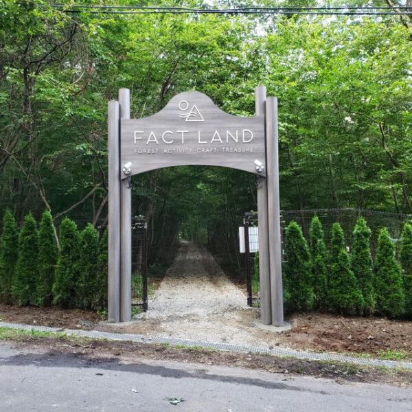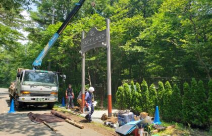 ご担当者様からの依頼で、森や地域に溶け込み冒険心がある看板を